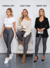Leggings de dama estilo Cuero Vinipiel MultiOutfits que podrás usar para cada ocasión luciendo espectacular. Características sobresalientes: Material Stretch. Tiro Alto y Pretina Ancha Reforzada que te harán lucir tu mejor Figura. Ajuste perfecto, estos leggings de tiro alto están diseñados para realzar tu figura y efecto visual de piernas largas. Multiestilo, puede usarlo tanto para crear outfits elegantes como casuales, salidas múltiples, o simplemente estar cómoda y bella en casa.
