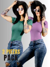 Set de 2 Blusas Playera de Mujer en Canalé Stretch para un estilo relajado y cómodo.