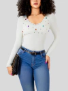 💥 Luce femenina, elegante y cómoda con este suéter ajustado con pedrería. Una pieza que combina moda y estilo en cada ocasión. ✨