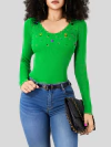 ✨ Destaca con elegancia y brillo usando este suéter ajustado de mujer con cuello V y detalles de pedrería en el busto. Su corte ceñido resalta tu figura de manera natural, mientras que la pedrería añade un toque sofisticado y femenino, ideal para salidas, eventos o looks casuales con estilo. 🌸